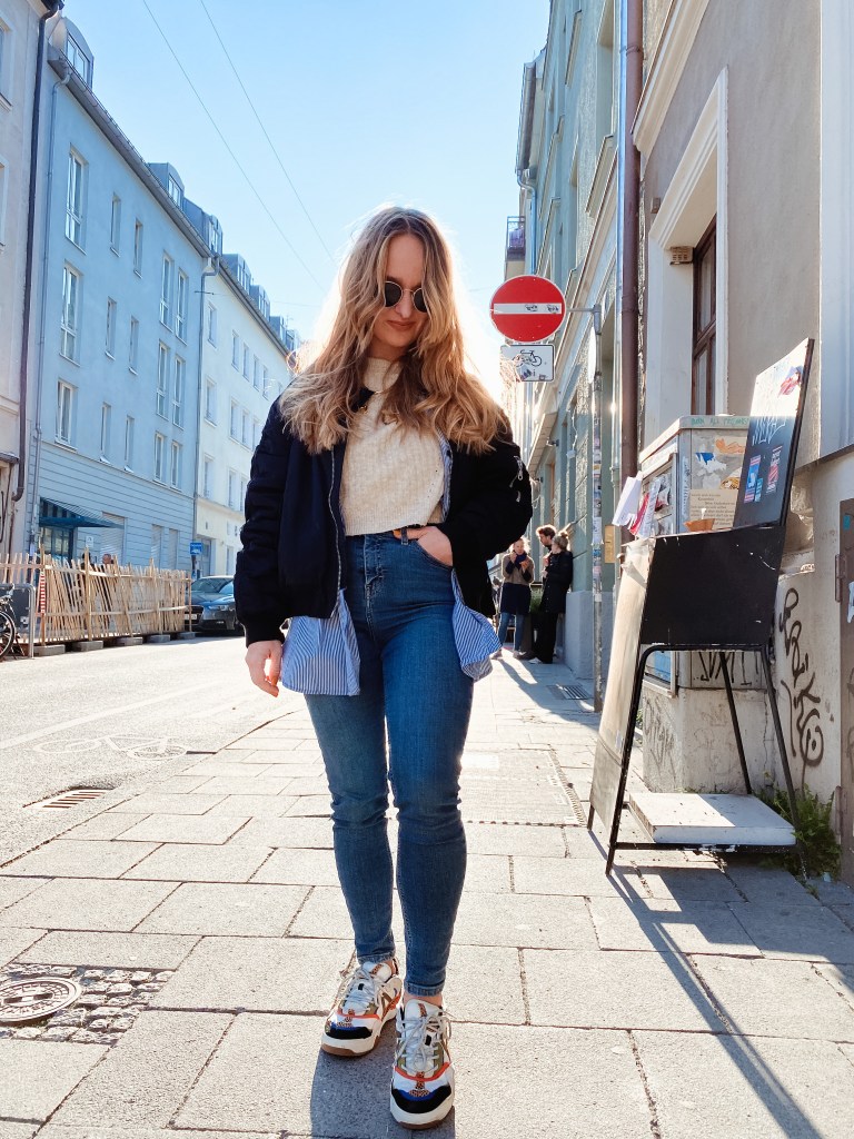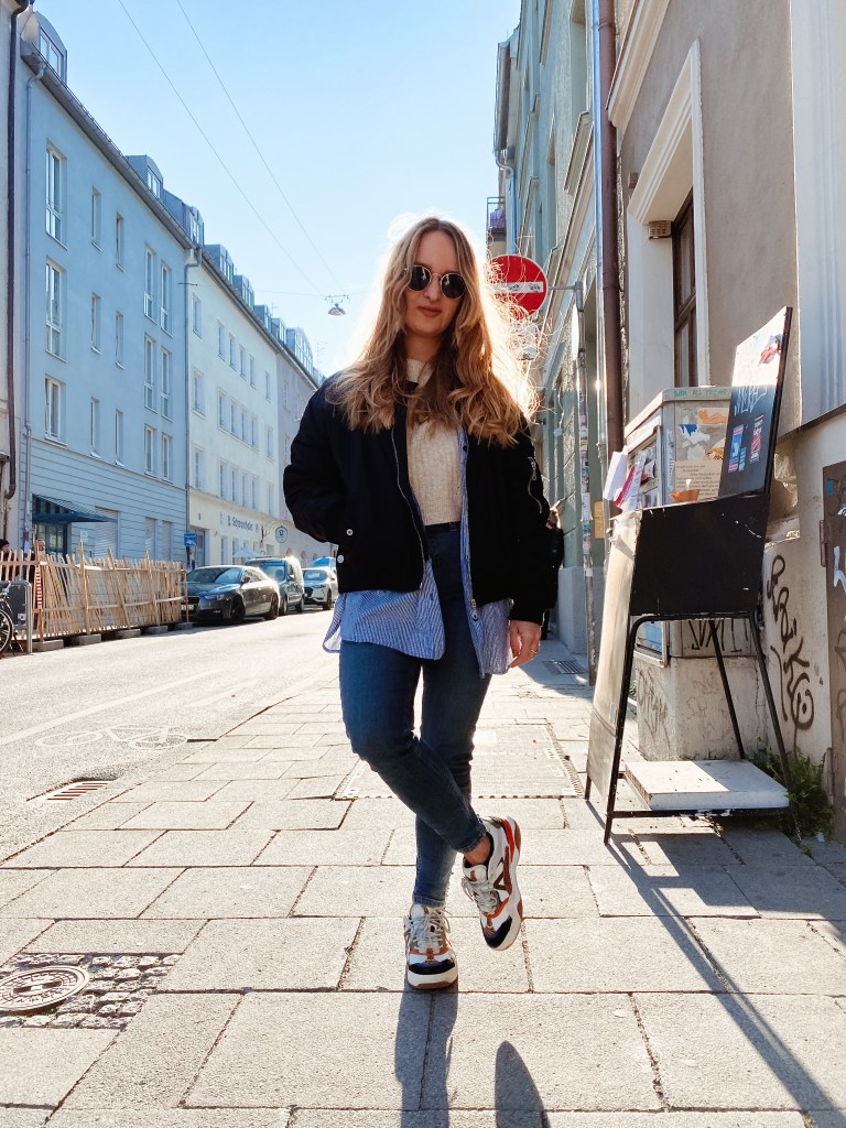 So langsam wird es wärmer und das bedeutet auch, dass Layering nicht nur cool sondern notwendig ist, wenn die Tage kalt starten und enden und aber tagsüber an die 20 Grad herrschen. Dafür liebe ich beispielsweise Oversized Hemden über meinem Shirt und eine Bomberjacke. Und wenn das Outfit bereits etwas simpler ist, passen crazy Sneaker super, um mit Prints das Outfit etwas aufzupeppen und ihm das gewisse Etwas zu verleihen.